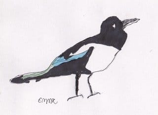 Emma was born in 1971 with Apert’s syndrome with anomalies of the skull, face and limbs. The fact that Emma was born with only 4 fingers on each hand has never hindered her with her painting or pottery or indeed, her life. When she was 19 she went to the Hexagon Centre in Chandler’s Ford and was lucky enough to have art classes with Ernest Lilley. With Ernie Emma produced a number of detailed and highly original patterned paintings. Ernie encouraged her to make pottery and helped her achieve a GCSE in Pottery. Emma now lives in Ringwood in the week and attends the lively Spiral Blue Centre for people with learning difficulties. She also goes to a weekly art class. She comes, by bus, to her parents in Swanage every weekend. And in Swanage she has attended classes with Kinu Barsley and Annie Campbell. Nowadays she mostly produces cards, including her family’s annual Christmas cards, which she has sold at Boilerhouse Gallery events.